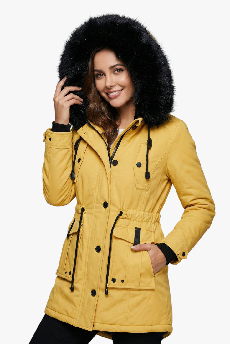 Faux Fur Hood: The oversized faux fur hood adds extra warmth and a stylish flair to your winter look.