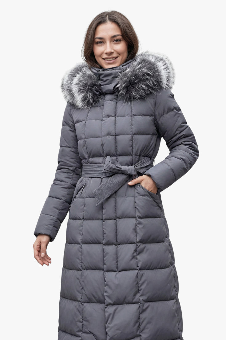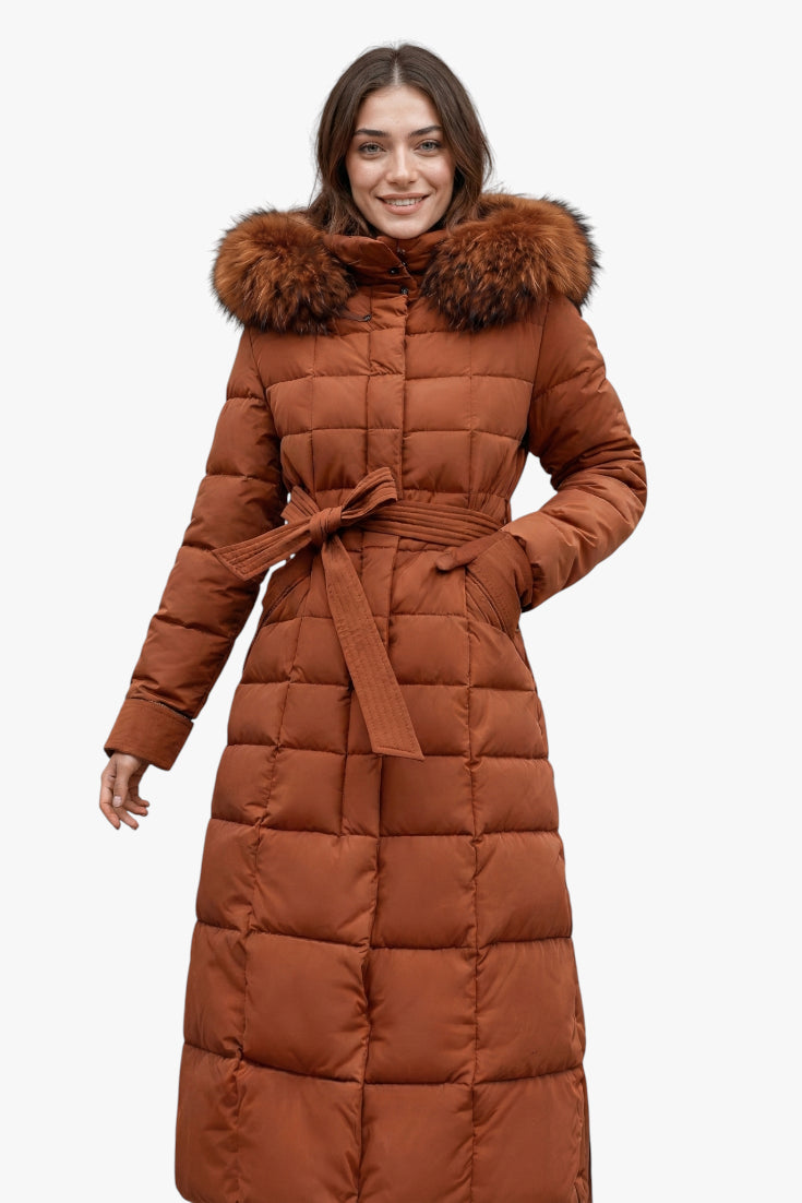 Long Belted Puffer Coat | Faux Fur Trimmed Hood | Ultra-Warm Insulation | Winter Chic