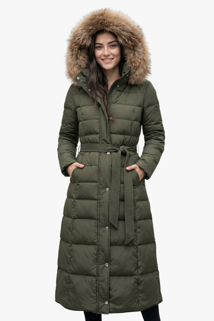 Stay warm and stylish in this long belted puffer coat, designed to withstand the harshest Canadian winters with ease. Featuring premium down-alternative insulation, a detachable faux fur-trimmed hood, and a flattering belted waist, this coat combines luxury with functionality. The full-length design offers maximum warmth and protection, making it perfect for everyday wear or outdoor adventures.
